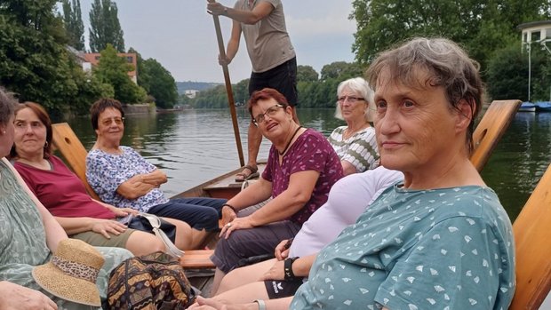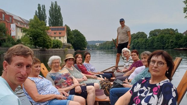 Bei bedecktem Himmel, sodass es angenehm war, unterwegs zu sein, konnten wir eine schöne Fahrt geniessen und Tübingen vom Wasser aus bestaunen. So z.B. die verschieden farbigen Häuser der Neckarfront, die mit Blumen geschmückte Neckarbrücke oder den stärker zugewachsenen Arm auf der Seite der Schulen und des Gebäudes des Schwäbischen Tagblatts. Zum Abschluss sind wir in den Neckarmüller eingekehrt.